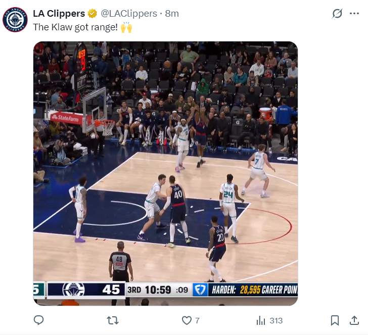 全场比赛小卡仅仅打31分钟,19中11,三分9中5,拿到35分5篮板3助攻1失误,命中率57.9%,三分命中率55.5%,真实命中率76.2%,正负值+8。过去的12场比赛小卡正负值+96快船第一。