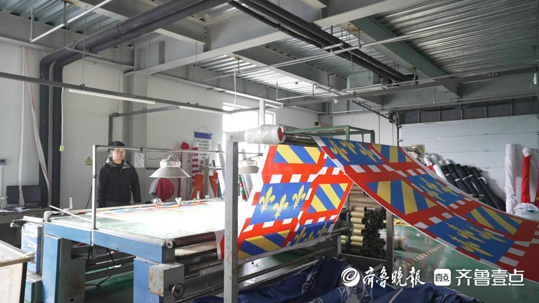 位于青岛市即墨区段泊岚镇的青岛万德隆,虽然只是一家扎根小镇的企业,却是中国北方最大的旗帜“超级工厂”。每年,全球超过一半的赛事旗帜从这里出发,飘扬到世界各地。从德甲、英超到NBA等美国四大联赛,从商业广告到球迷手中的巴掌旗,只要叫得上名字的国际大赛,场外飘扬的旗帜,很可能就出自青岛万德隆的工人之手。